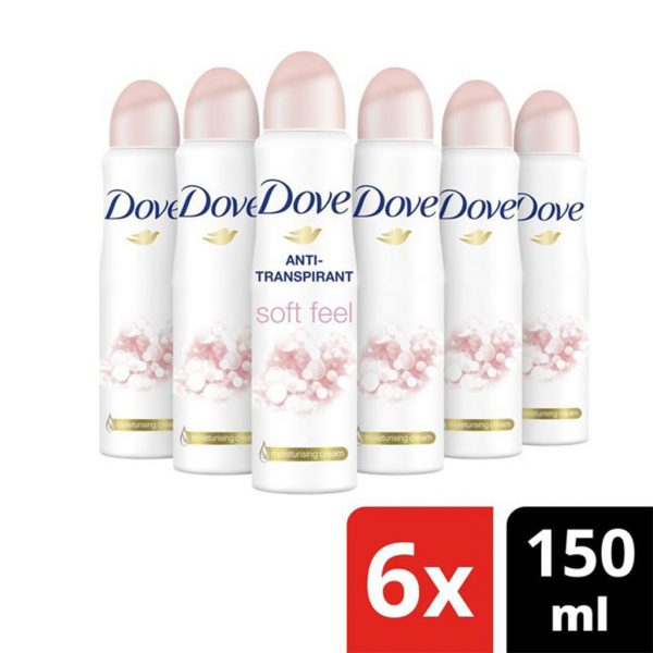 Dove Soft Feel Anti-transpirant Deodorant – 6 x 150 ml – Voordeelverpakking